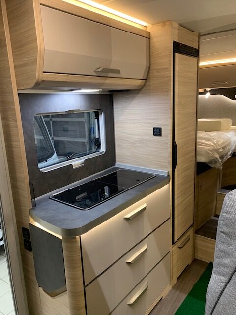 Geräumiges und komfortables Teilintegriertes Wohnmobil Mit seinem sehr großen, hellen Wohnbereich, dem königlichen Schlafzimmer mit umbaubaren Einzelbetten und zahlreichen Staufächern, der clever konzipierten Küche, dem Bad mit Duschkabine und der großzügigen Heckgarage ist es der perfekte Reisebegleiter für Paare, die „wie zu Hause“ unterwegs sein möchten.