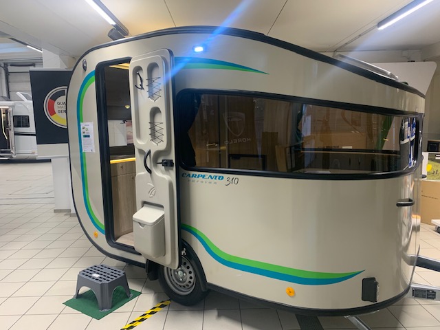 Le plus petit modèle, la 310, visible dans notre show room, s’adresse aux couples à la recherche d’une petite caravane de moins de 750 kg mais disposant d’un intérieur spacieux et lumineux et proposant une salle d’eau avec wc et une belle cuisine arrière.