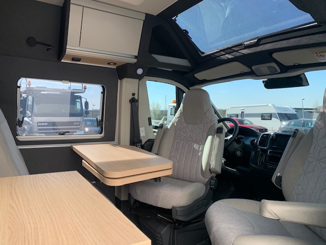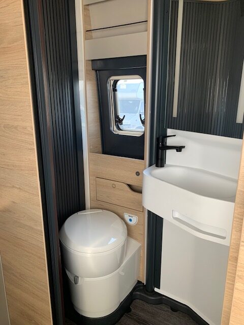 • Pack Funline : commande de Truma Inetx, store Remis, contrôle lumière 8 canaux, réservoir eaux usées isolé et chauffé, marche pied XL70cm, store extérieur Thule