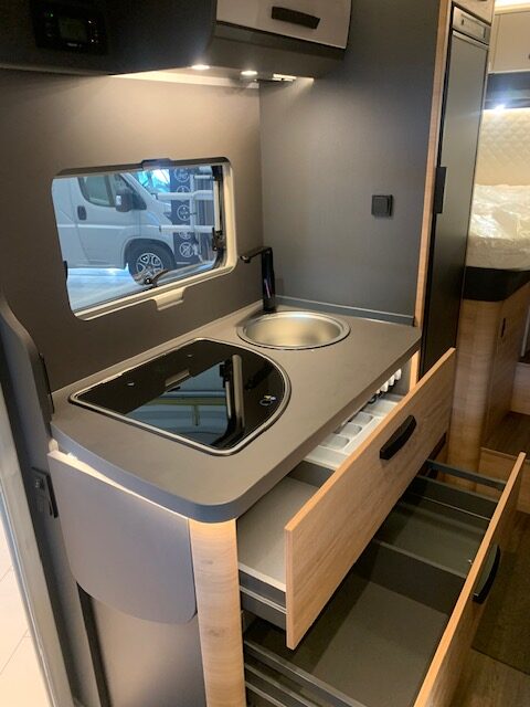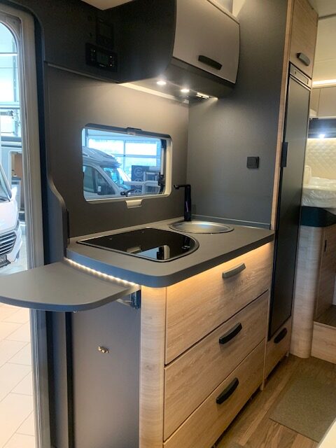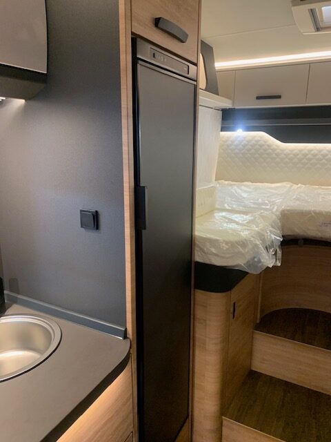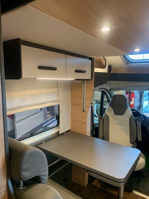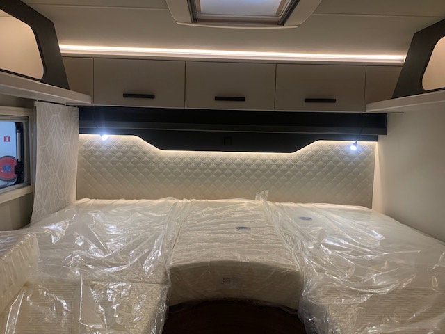 Profilé ingénieux et grand confort… Avec son  salon lumineux, sa chambre royale lits jumeaux convertibles avec nombreux rangements, sa cuisine astucieuse, sa salle d’eau avec parois de douche pivotante et sa grande soute garage, il est le compagnon parfait pour les camping-caristes désireux de voyager  » comme à la maison « . Grâce à son lit de pavillon deux personnes, il se transforme en un véhicule permettant de faire dormir 4 adultes dans les meilleures conditions.