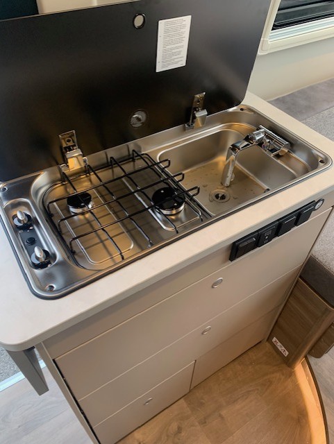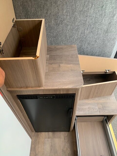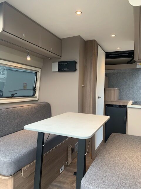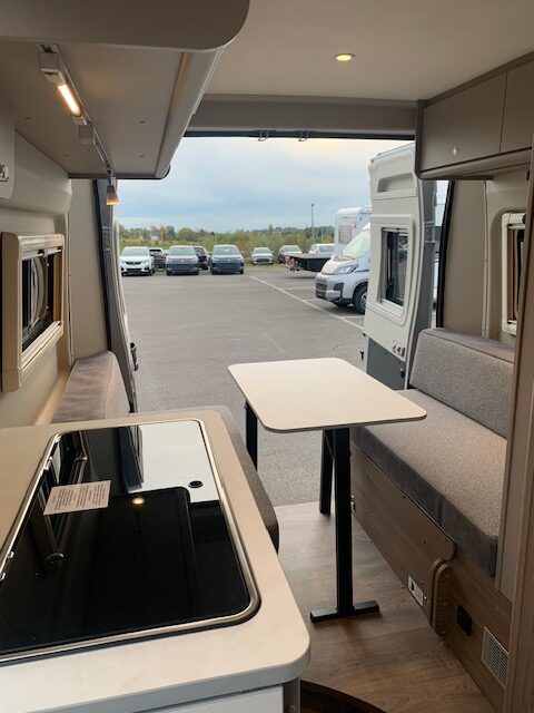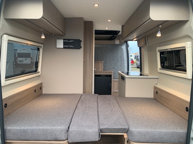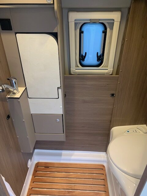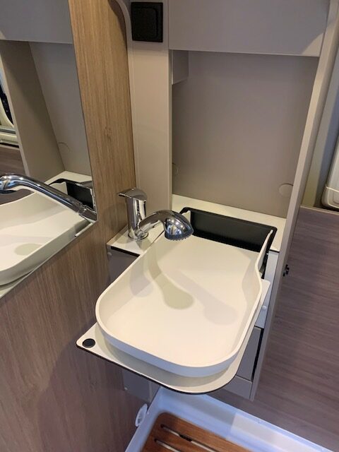 BASIC PACK :  salle d’eau équipée avec fenêtre, marche pied électrique XL, extension de table .