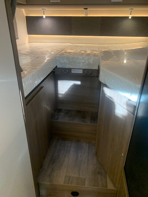 AUTRES OPTIONS : Ambiance Grise , boîte automatique, lit de pavillon , caillebotis de douche, réservoir diesel 90l, conversion lits jumeaux King Size, Combi 6E, porte vélo, Témoin pression pneus, frein à main électrique, phares led, TV et antenne satellite automatique